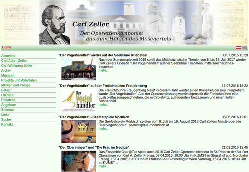 Am 15. August 2016 feiert die Carl Zeller-Webseite ihr 15-jähriges Bestehen.